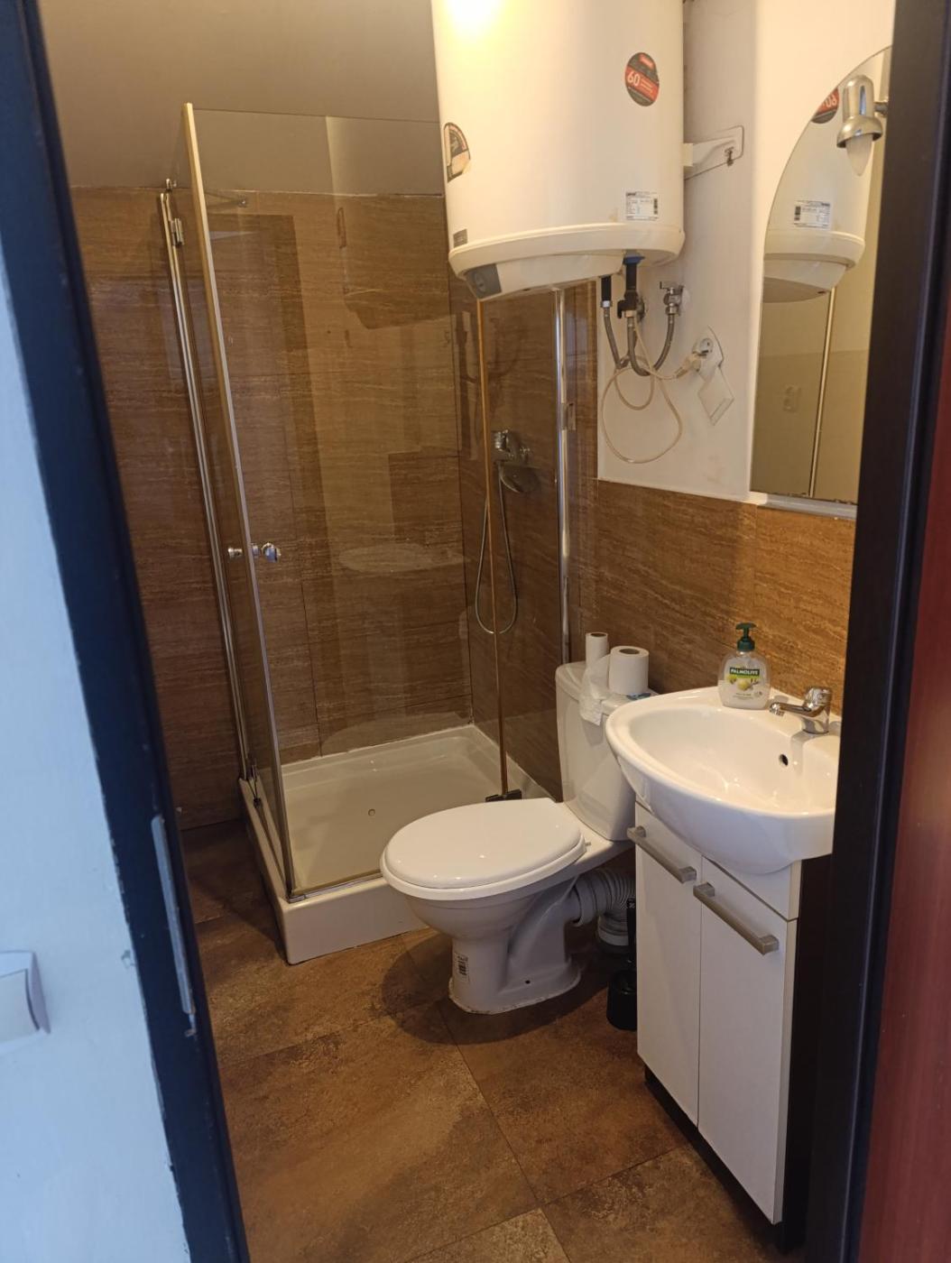 Pokój dwuosobowy. The double rooms kitchenette, which features a refrigerator and a microwave, is available for cooking and storing food. The double room provides a wardrobe and an electric kettle, as well as a private bathroom featuring a shower. The unit offers 1 bed. Pokój Dwuosobowy - 2 osobowy. Powierzchnia pokoju ok.: 20 mkw.